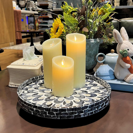 12.5" Lazy Susan for Table Top – Mother of Pearl Spinning Turntable Serving Tray, Marble Lazy Susan Organizer for Dining Table Centerpiece, Kitchen Island Decor, Bathroom Counter, Outdoor Use (Flower)