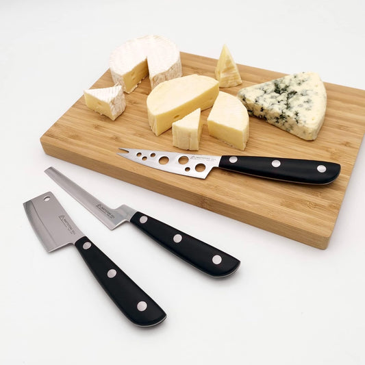 Cheese Knife Set, MATTSTONE HILL Cheese Knives - Soft & Semi Hard Cheese Knife, Soft Cheese Slicer, Cheese Cleaver, Premium Stainless Steel, Black Handle