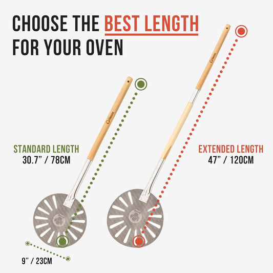 Chef Pomodoro Pizza Oven Brush with Scraper - Adjustable Handle (55cm to 87.7cm), Pizza Stone Brush, Pizza Oven Cleaning Brush, Outdoor Pizza Oven Accessories for Pizza Stones, BBQ Grill, and Ovens