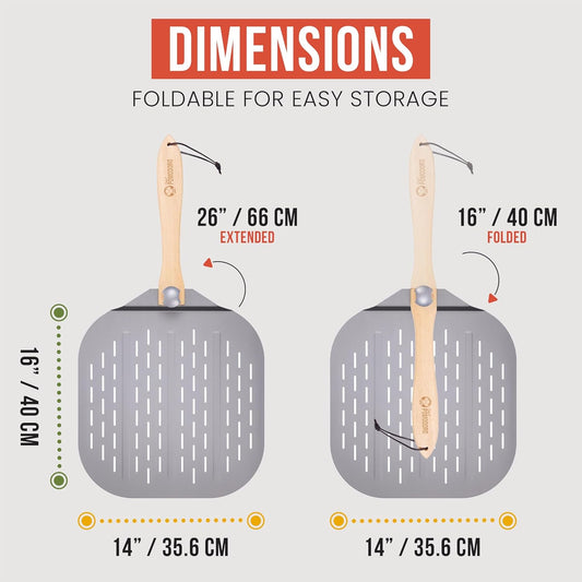 Chef Pomodoro Aluminum Metal Pizza Peel with Foldable Wood Handle for Easy Storage, Pizza Spatula, Gourmet Luxury Pizza Paddle for Baking Homemade Pizza Bread (18 x 20 inch)