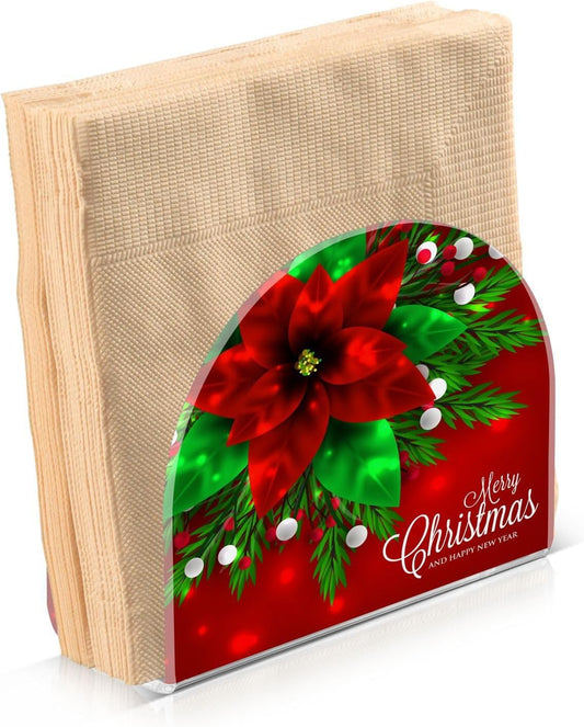 Christmas with Poinsettia Napkin Holder for Table Paper Napkins Holder Acrylic Tissue Dispenser Kitchen Dining Room Bathroom Party Car Decor