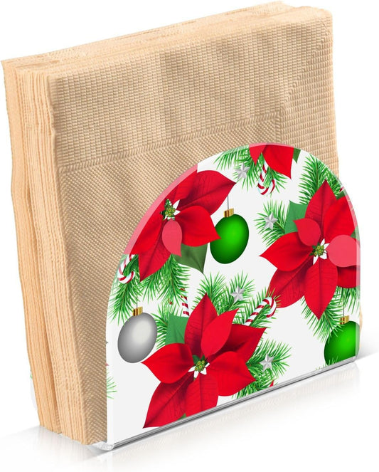 Christmas Poinsettia Flowers Balls Napkin Holder for Table Paper Napkins Holder Acrylic Tissue Dispenser Kitchen Dining Room Bathroom Party Car Decor