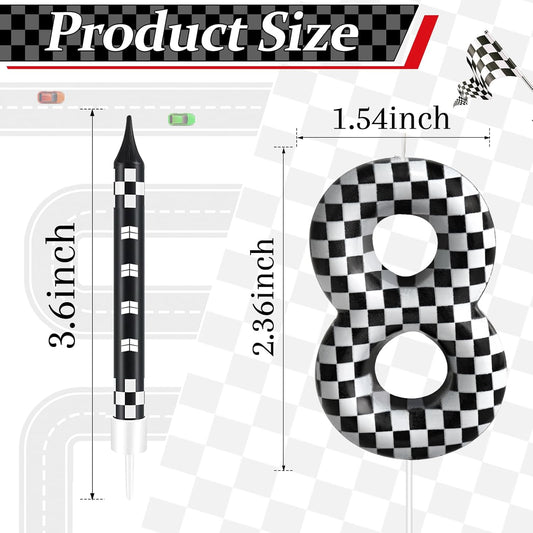 13 Pcs Racing Cars Themed Birthday Candles Black and White Race Number 8 Checkered Candle Cake Topper for Racing Car Party Decoration Supplies (Number 8)