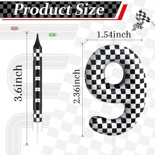 13 Pcs Racing Cars Themed Birthday Candles Black and White Race Number 9 Checkered Candle Cake Topper for Racing Car Party Decoration Supplies (Number 9)