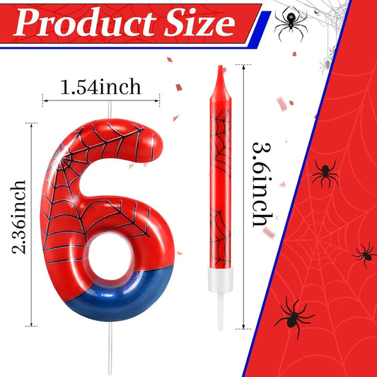 13 Pcs Spider Themed Birthday Candle Set Red Spider Theme Number 6 Candle Cake Topper for Boys Girls Birthday Decoration Spider Party Decoration Supplies (Number 6)