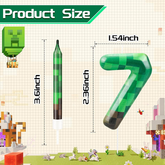 13 Pcs Dynamite Themed Birthday Cake Candles & Number 7 Candle Topper for Pixel Theme Birthday Party