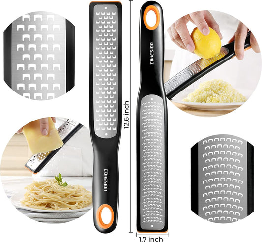 Cohesion Etched Zester & Grater Set of 2 - Kitchen Zester Tool for Lemon, Cheese, Garlic, Ginger, Nutmeg, Chocolate, Fruits, Vegetables - Sharp Premium Stainless Steel Blade with Protective Cover