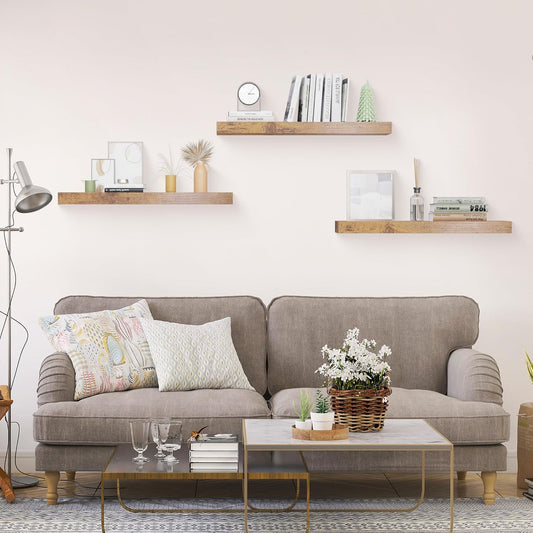 Colima Floating Shelves for Wall Brown Wood Shelf for Bedroom, 36 Inch Wall Mounted Floating Shelves for Bathroom Living Room Kitchen Office, 1.3" Thick Floating Book Shelves Set of 3