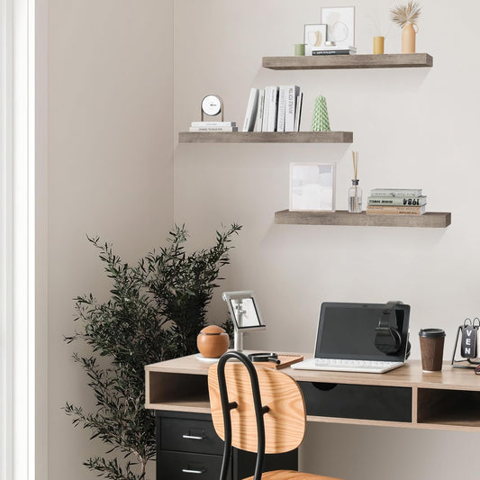 Colima Floating Shelves for Grey Wood Wall Shelf for Bedroom, 24 Inch Wall Mounted Floating Shelves for Bathroom Living Room Kitchen Office, 1.5" Thick Floating Book Shelves for Wall, Set of 3