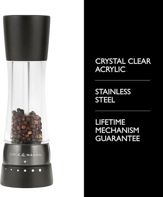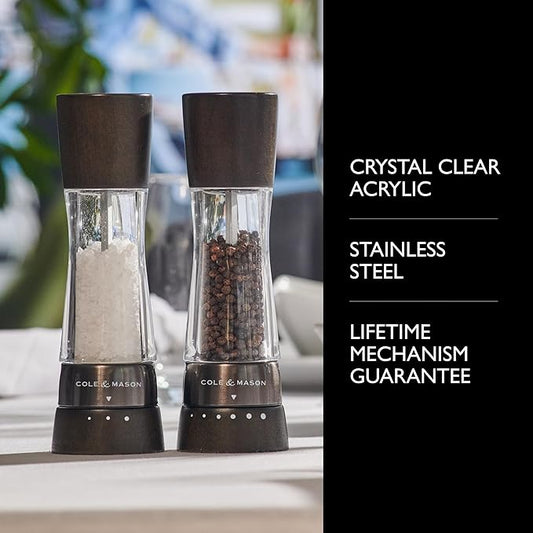 Cole & Mason H332293 Derwent Black Wood Salt and Pepper Mills, Gourmet Precision+, Adjustable Grind, Stained Beech/Acrylic, 190 mm, Gift Set, Includes 1 Salt and 1 Pepper Grinders