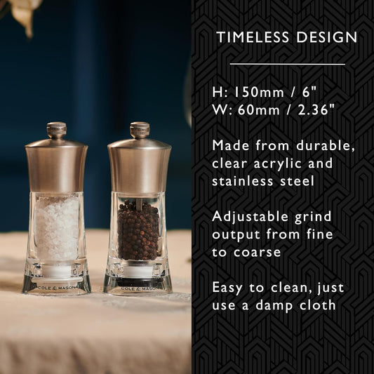 Cole & Mason Bromley Salt & Pepper Mill Gift Set, 6" - Salt & Pepper Grinders with Ultra-Sharp Grinding Mechanisms - Refillable Mills & Spice Shakers with Adjustable Grinding - Acrylic Gift Set