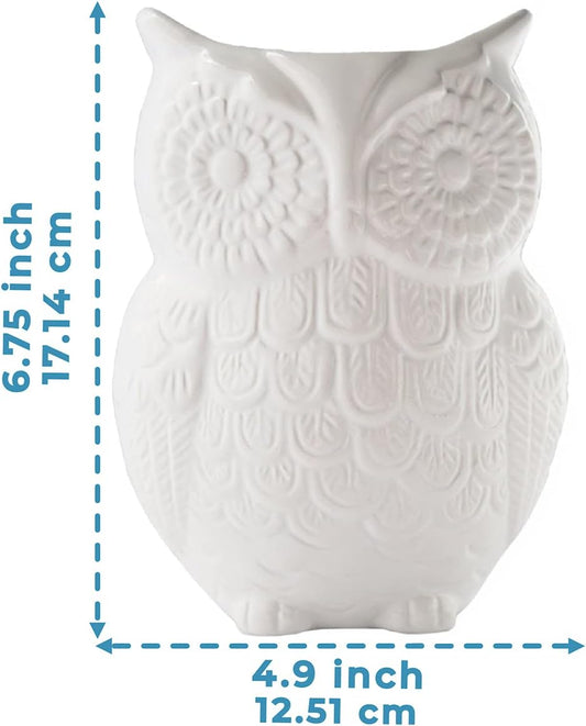 Comfify Owl Utensil Holder Decorative Ceramic Cookware Crock & Organizer, in Lovely White Color - Utensil Shaped Caddy and Perfect Kitchen Ceramic Decor Gift for Countertop - 5” x 7” x 4” Size