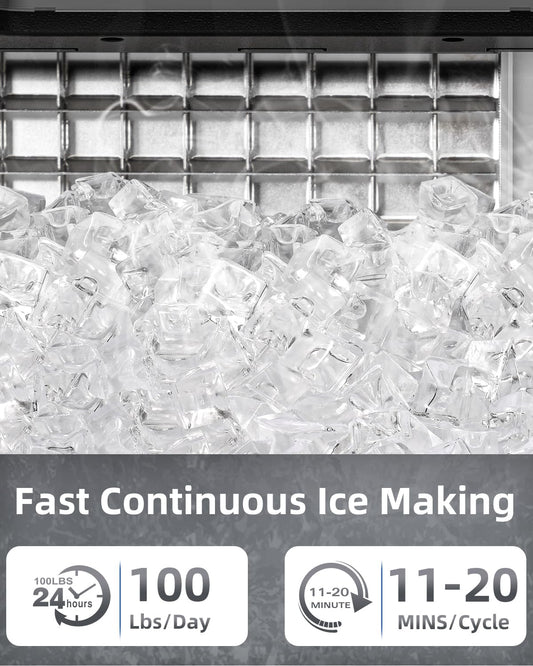 Commercial Ice Maker Machine, 100lbs/24H Ice Machine, 34lbs Storage, 45 Ice Cubes Ready in 6-15 Minutes, Freestanding Ice Maker for Bar, Home, Office, Restaurant