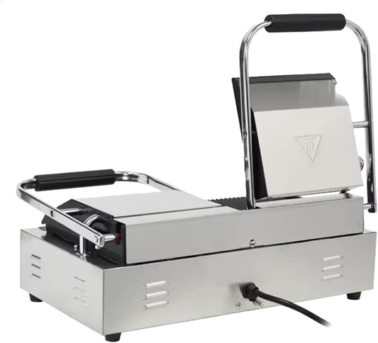 Commercial Panini Press With Grooved Grill Sandwich Maker Machine Electric Contact Grill Single (Single Grooved Top&Bottom)