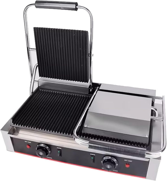 Commercial Panini Contact Grill Large Sandwich Press Panini Maker Machine Electric With Ribbed Top And Bottom Plate (Ribbed Top&Smooth Bottom)