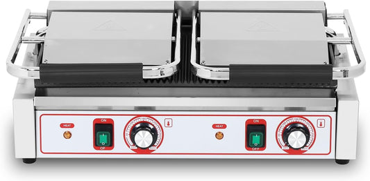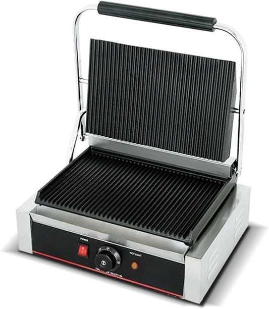 Commercial Panini Grill Grooved Press Sandwich Maker Industrial Panini Machine Single Grill Big (Double Ribbed Panini Press Grill)