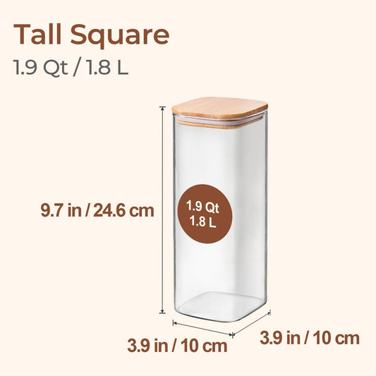 ComSaf 1.8 Qt Rectangle Glass Storage Containers with Lids, Glass Jars with Bamboo Lids, Clear Food Storage Jar, Sugar Coffee Containers, Pantry Storage Container for Pasta Rice Flour Oats Nuts Tea