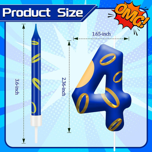13PCS Birthday Cake Candles Set - Blue and Golden Ring Number Candles with Vibrant Designs for Boys & Girls, Theme Birthday Party Decorations, Cake Toppers for Theme Parties(Number 4)