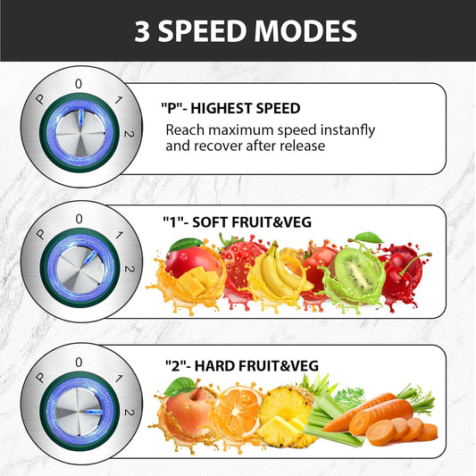 1300W KOIOS Centrifugal Juicer Machines, Juice Extractor with Extra Large 3inch Feed Chute, Full Copper Motor, Titanium-Plated Filter, High Juice Yield, 3 Speeds Mode, Brush included, Non-BPA, Blue