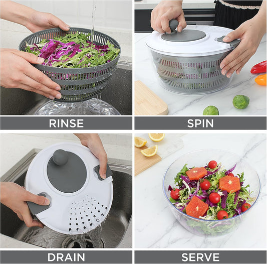 Cook with Color Salad Spinner - Lettuce and Produce Dryer with Bowl, Colander and Built in draining System for Fresh, Crisp, Clean Salad and Produce (Grey)