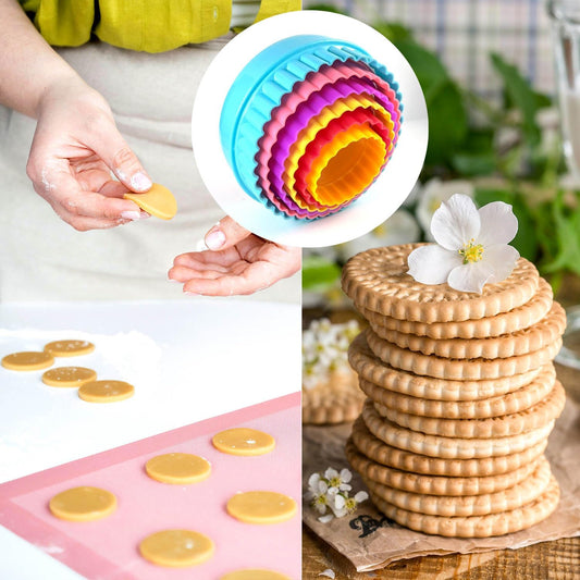 Cookie Biscuit Cutter Set, Two Side Cookie Cutters Plastic Set Multi-size Cake Fruit Vegetable Shapes Cutter Random color (Round Shaped, 6 Pack)