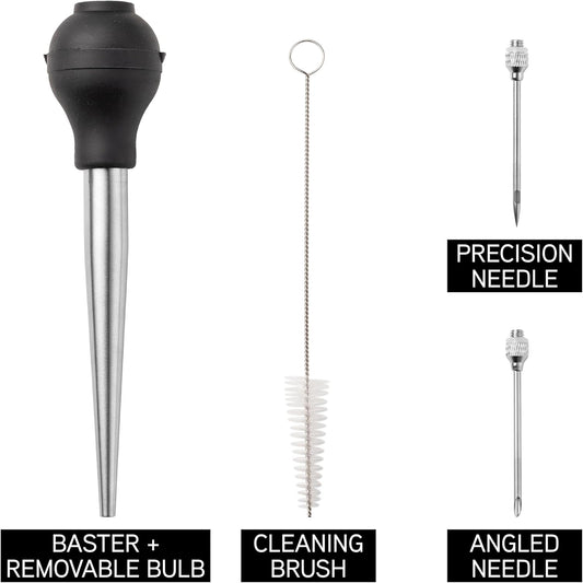 COOK WITH COLOR Turkey Baster with Cleaning Brush - Food Grade Syringe Baster For Cooking, Deluxe Set, Gray
