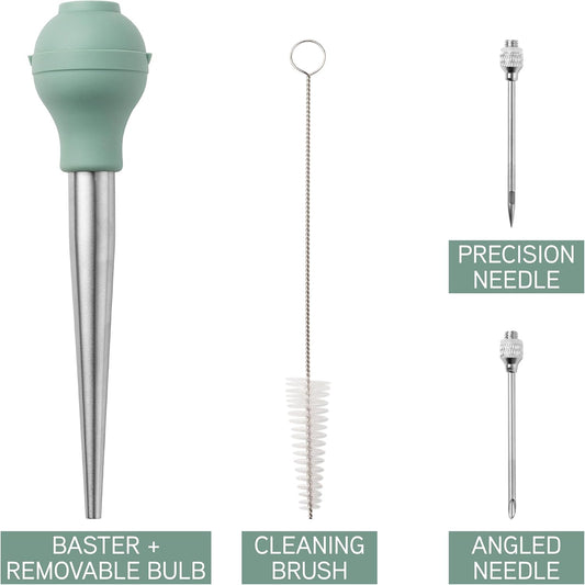 COOK WITH COLOR Turkey Baster with Cleaning Brush - Food Grade Syringe Baster For Cooking, Deluxe Set, Sage
