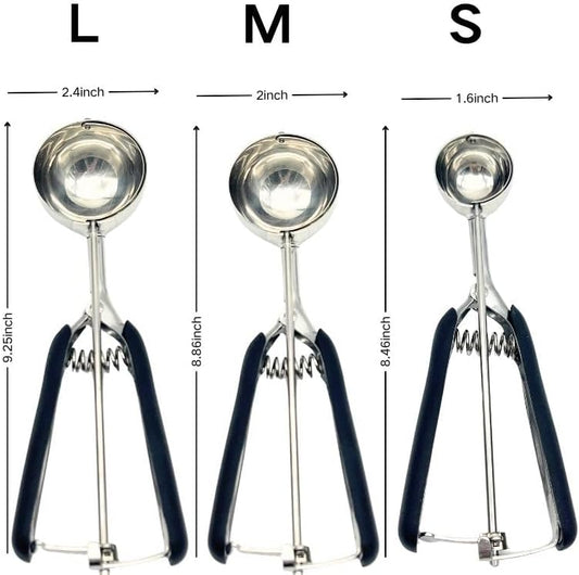 Cookie Scoop Set, 3Pcs Ice Cream Scoop Set, Small/1 Tbsp, Medium/2 Tbsp, Large/3 Tbsp, Stainless Steel Cookie Dough Scoop with Non-Slip Grip,for Melon Balls waffle Muffins