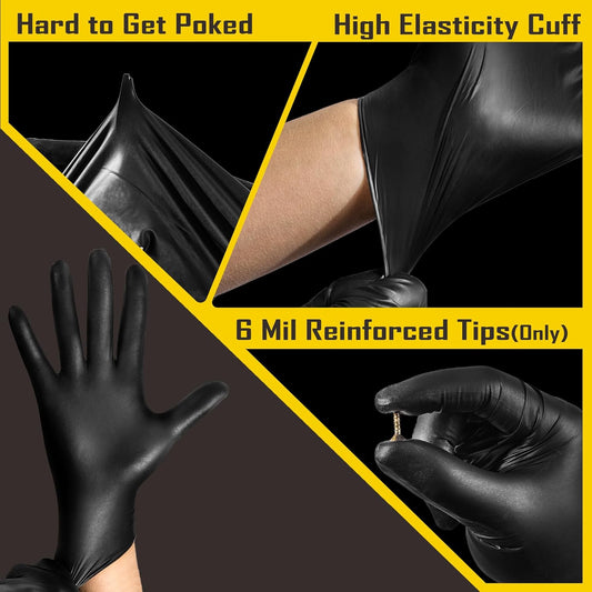 COOLJOB 5 Mil Black Disposable Nitrile Gloves for Men, Heavy-Duty for Household Cleaning, Cooking, Working, Powder Free, S-XL