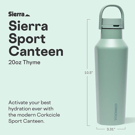 Corkcicle Classic Sport Canteen Insulated Water Bottle - Keeps Beverages Cold 25 Hours - Triple Insulated - Summer Drinkware Gift - Keeps Drinks Ice Cold - Leak-Proof Cap - 20 oz - Thyme