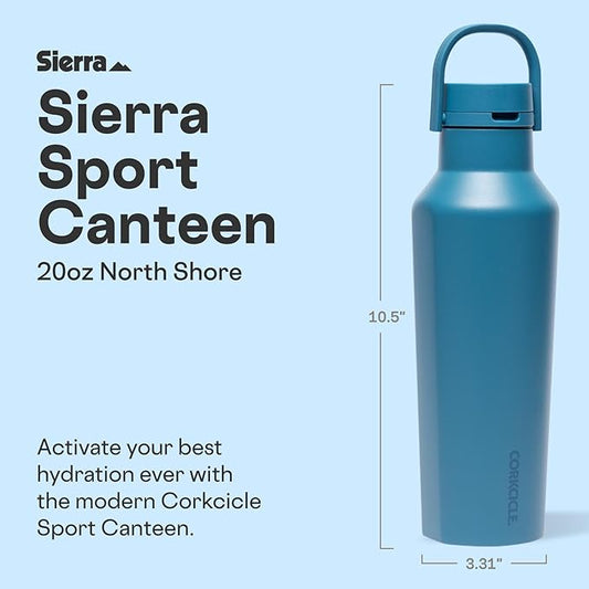 Corkcicle Sport Canteen - Keeps Drinks Cold 25 Hours - Stainless Steel Water Bottle - Triple-Insulated - Spill-Proof - Summer Drinkware Gift - Keeps Drinks Ice Cold - 20 oz - North Shore