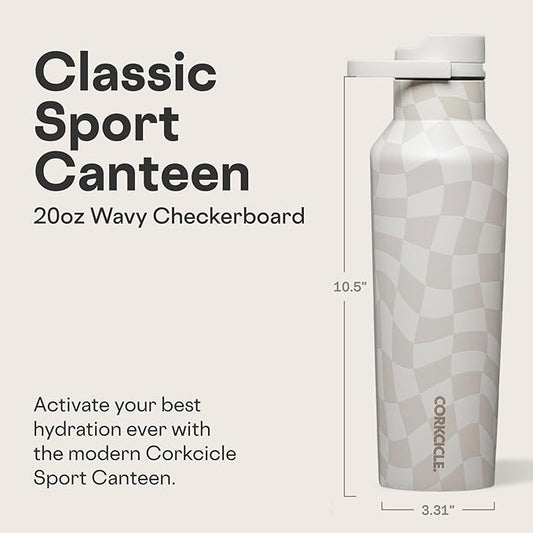 Corkcicle Classic Sport Canteen Insulated Water Bottle - Keeps Beverages Cold 25 Hours - Triple Insulated - Summer Drinkware Gift - Keeps Drinks Ice Cold - Leak-Proof Cap - 20 oz - Wavy Checkerboard