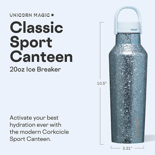 Corkcicle Classic Sport Canteen - Insulated Stainless Steel Water Bottle - Compact & Travel-Friendly - Durable - Dishwasher Safe - BPA Free - Non-Slip Silicone Base - 20 oz - Unicorn Wonderland