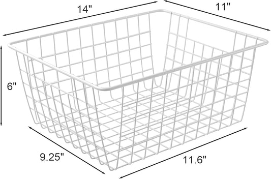 14" Upright Freezer Storage Baskets, Large White Wire Storage Bins Bakset for Freezer, Pantry, Bathroom Organizing, Set of 2
