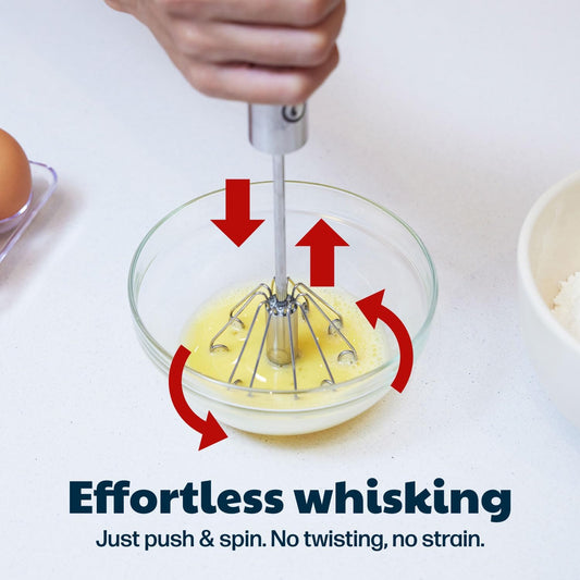 14 Inch Stainless Steel Hand Whisk - Durable & Easy to Use Push-Down Zip Whisker - Rotary Hand Mixer for Beating Eggs, Frothing Milk, Blending, Mixing, Whipping Smoothies & Shakes - Kitchen Tools