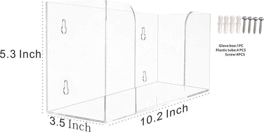 Cq acrylic Rubber Glove Holder for Wall Mount,Clear Disposable Glove Dispenser and Glove Box on Wall,Multipurpose Wall Floating Mask Dispenser and Medical Gloves Rack Storage,10.2”x5.3”x3.5” Pack of 1