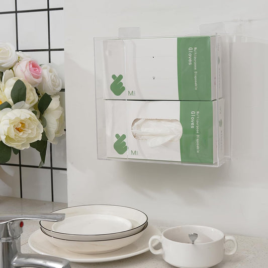 Cq acrylic Rubber Glove Holder for Wall Mount,Clear Disposable Glove Dispenser and Glove Box on Wall,Multipurpose Wall Floating Mask Dispenser and Medical Gloves Rack Storage,10.2”x9.8”x3.5” Pack of 1