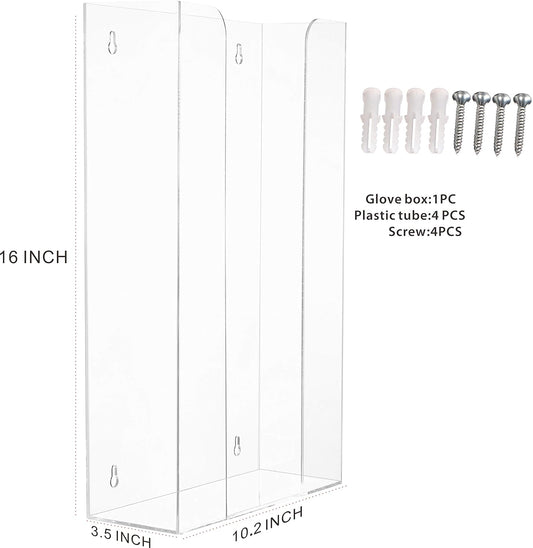 Cq acrylic Rubber Glove Holder for Wall Mount,Clear Disposable Glove Dispenser and Glove Box on Wall,Multipurpose Wall Floating Mask Dispenser and Medical Gloves Rack Storage,10.2”x16”x3.5” Pack of 1