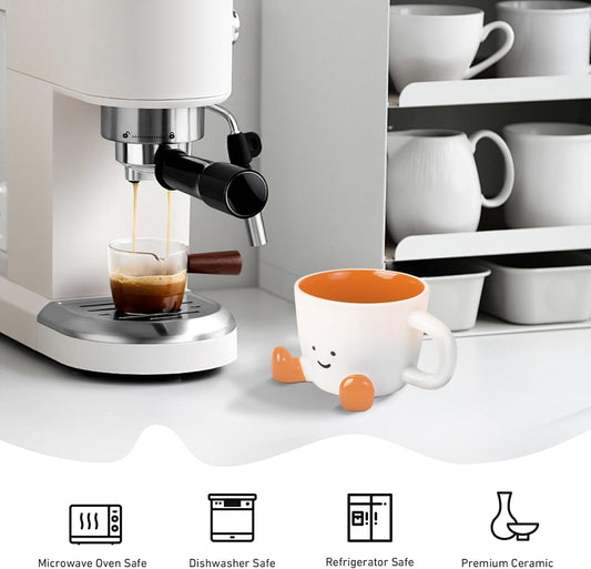 Cute Coffee Mug for Women, Ceramic Funny Coffee Cup - 12 oz Novelty Unique Teacup with Handle - Artistic Coffee Mug for Family, Friends, Coworkers(Orange)