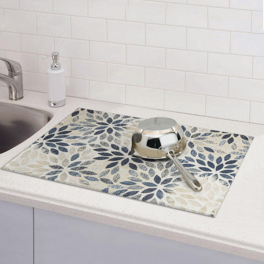 Dahlia Dish Drying Mat 18x24 for Kitchen Counter, Blue Floral Decorative Absorbent Coffee Mat Dish Drying Pad Coffee Bar Dish Drainer Rack Mat Drainer Mat