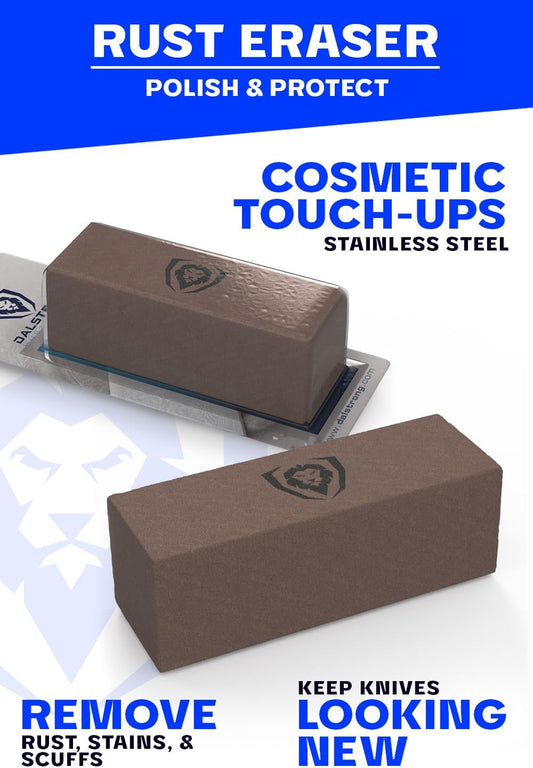 Dalstrong Premium Rust Remover & Eraser - Knife Maintenance and Care - For Knives, Scissors, Stainless Steel Pots and Pans, Whetstones - Sharp Polish for Tools - Calcium Carbonate