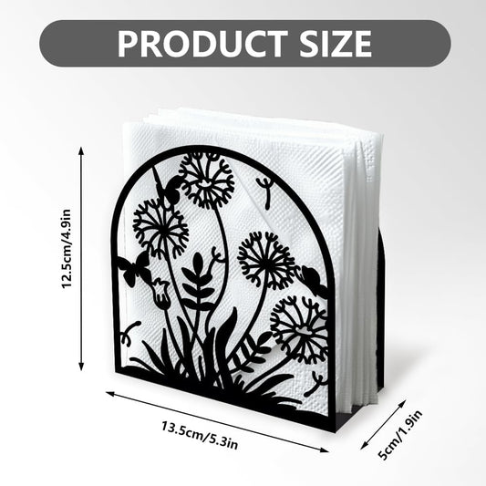 Dandelion Decorative Black Metal Napkin Holder for Table, 5.3" x 4.9" x 1.9" Grass Flower Standing Napkin Holder for Home Kitchen Restaurant Picnic Party Coffee Bar Dining Room