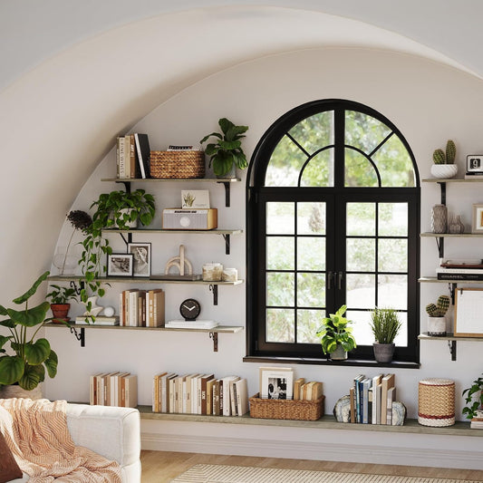 DINZI LVJ Long Wall Shelves, 47.3Inch Wall Mounted Shelves Set of 4, Extra Large Wall Storage Ledges with Sturdy Metal Brackets for Living Room, Bathroom, Bedroom, Kitchen, Rustic Brown