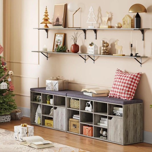 DINZI LVJ Long Wall Shelves, 47.3Inch Wall Mounted Shelves Set of 2, Extra Large Floating Storage Ledges with Sturdy Metal Brackets for Living Room, Bathroom, Bedroom, Kitchen, Gray Wash