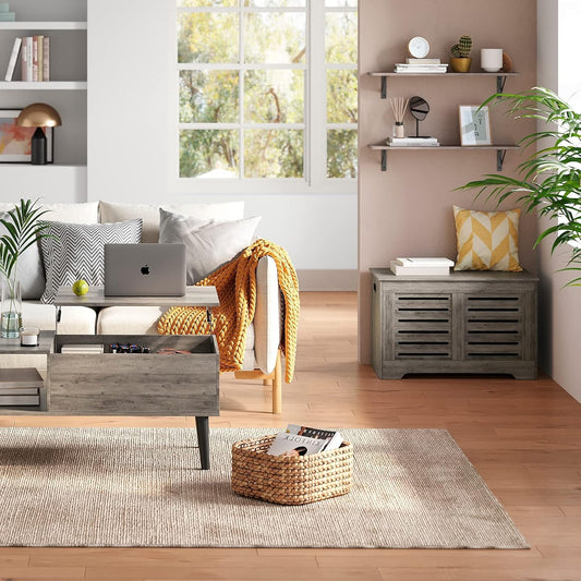 DINZI LVJ Wall Shelves, 23.6 x 7.9 x 6.1 Inch Floating Shelves for Wall, Set of 2, Easy-to-Install Wall Storage Ledges with Sturdy Metal Brackets for Living Room, Bathroom, Kitchen, Gray Wash