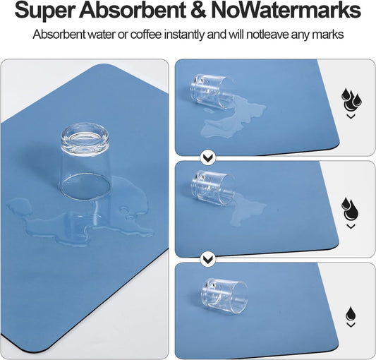 Dish Drying Mat for Kitchen Counter | Coffee Bar Mat for Countertops | Heat Resistant Drainer Mat with Non-slip Rubber Backed | Hide Stain Kitchen Absorbent Draining Mat | Blue 16"x20"