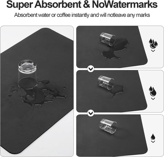 Dish Drying Mat for Kitchen Counter | Coffee Bar Mat for Countertops | Heat Resistant Drainer Mat with Non-slip Rubber Backed | Hide Stain Kitchen Absorbent Draining Mat | Black 16"x24"