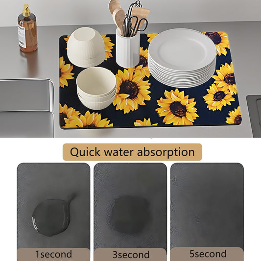 Dish Drying Mat Foldable Fall Kitchen Drying Mat Absorbent Sink Mat Multi-Purpose Coffee Pad Easy To Clean,Kitchen Gadgets,sunflower decor(sunflower) (16inches*20inches)