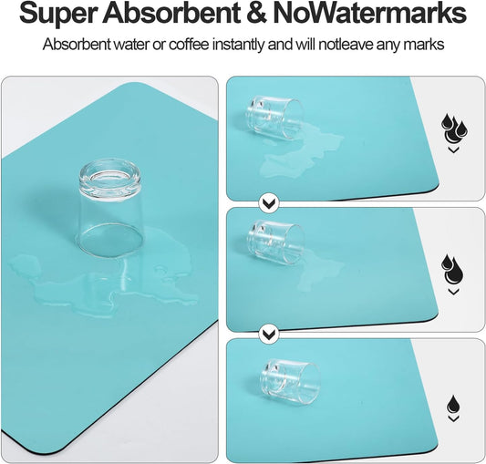 Dish Drying Mat for Kitchen Counter | Coffee Bar Mat for Countertops | Heat Resistant Drainer Mat with Non-slip Rubber Backed | Hide Stain Kitchen Absorbent Draining Mat | Turquoise 16"x24"