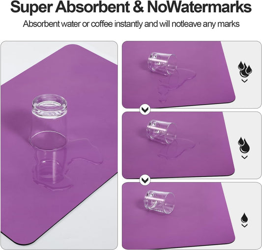 Dish Drying Mat for Kitchen Counter | Coffee Bar Mat for Countertops | Heat Resistant Drainer Mat with Non-slip Rubber Backed | Hide Stain Kitchen Absorbent Draining Mat | Purple 16"x20"